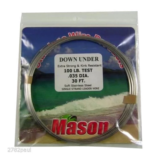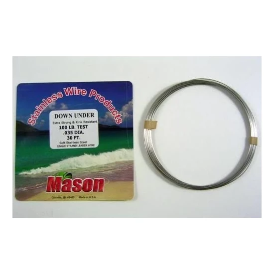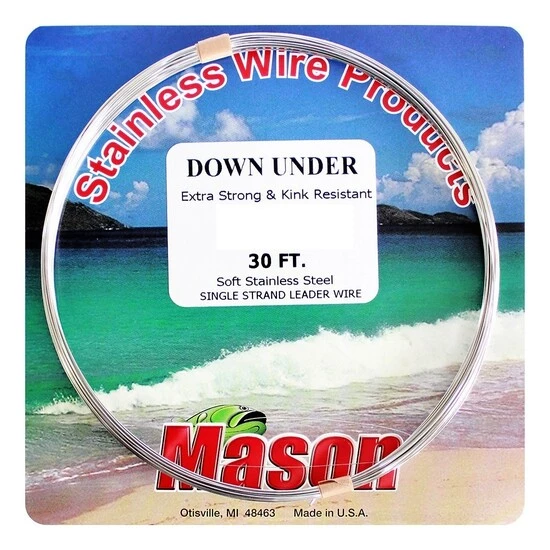 “DOWN UNDER” Trolling Wire – Mason’s soft trolling wire is specially soft drawn and annealed for easy handling and maximum strength. This range has a small diameter per lb. test to fit deep water trolling reels used in fresh and salt water.