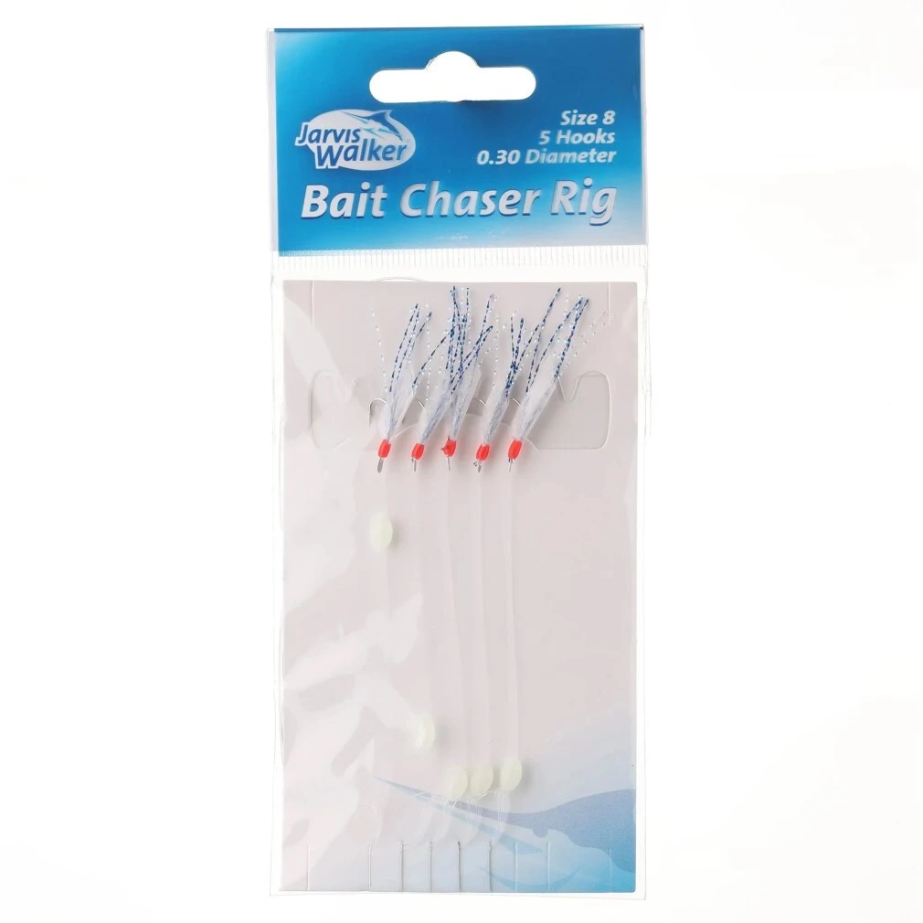 Catch live bait the easy way with this bait chaser rigs, featuring thin 0.30mm leader rigged with five size 8 hooks, lumo beads plus a swivel.