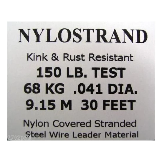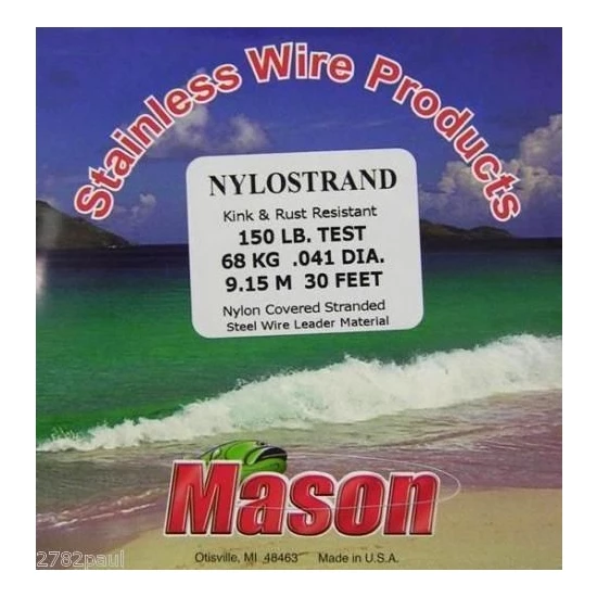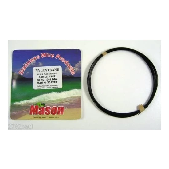 Mason “NYLOSTRAND” Wire Leader is great for both fresh and salt water fishing. Its usage is popular for trolling, downriggers, leader material and many other usages. It is made of 7 strands of kink-resisting stainless-steel wire with a smooth nylon coating.