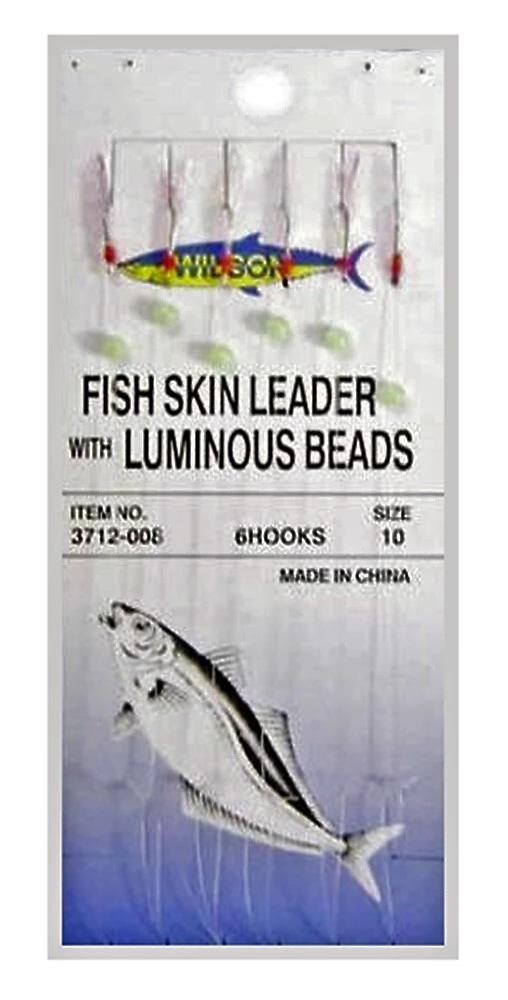 Each jig has 6 hooks rigged with fish skin leader and luminous beads. The Wilson bait jigs are one of the top selling bait jigs on the market and will out fish all other brands.