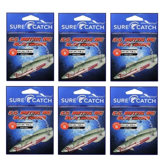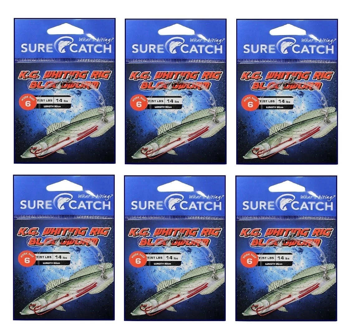 6 Pack of Surecatch King George Whiting Rig with Chemically Sharpened Bloodworm Hooks