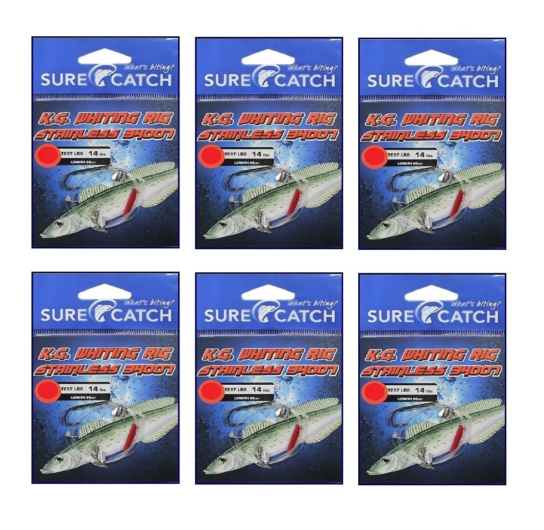 6 Pack of Surecatch King George Whiting Rigs with Stainless Steel 34007 Hooks
