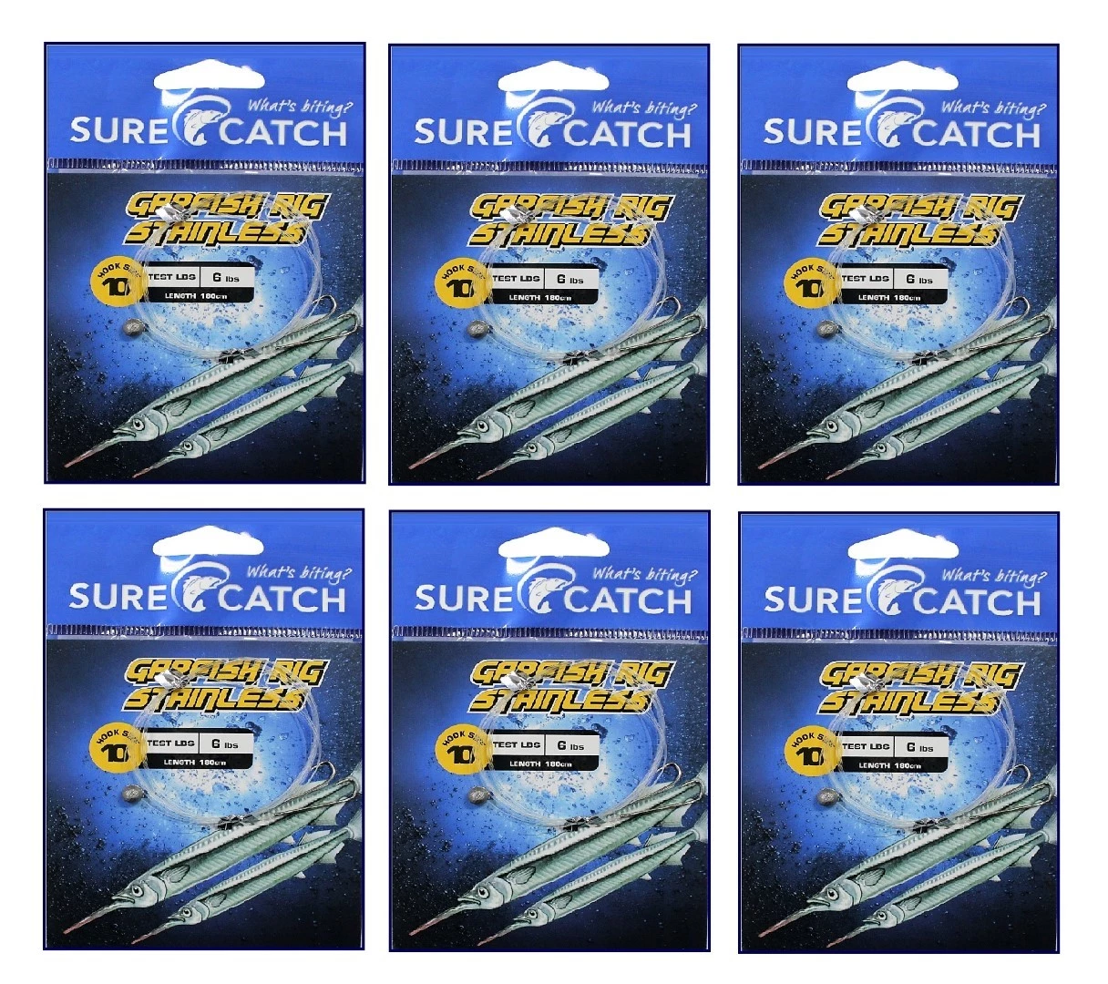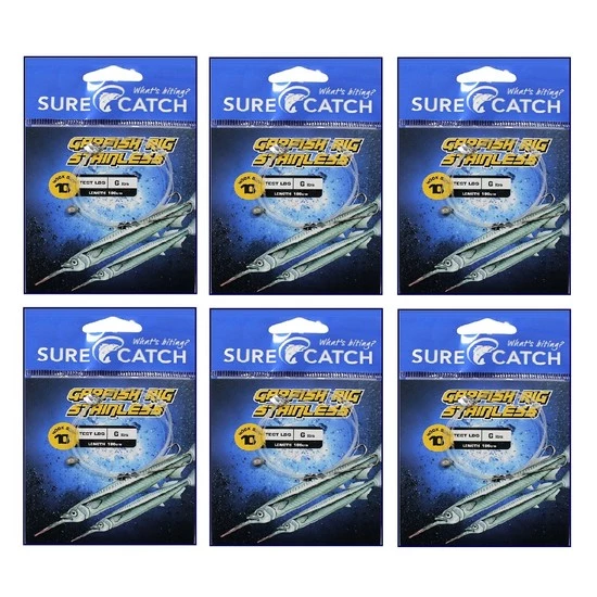 6 Pack of Surecatch Pre-Tied 180cm Garfish Rig