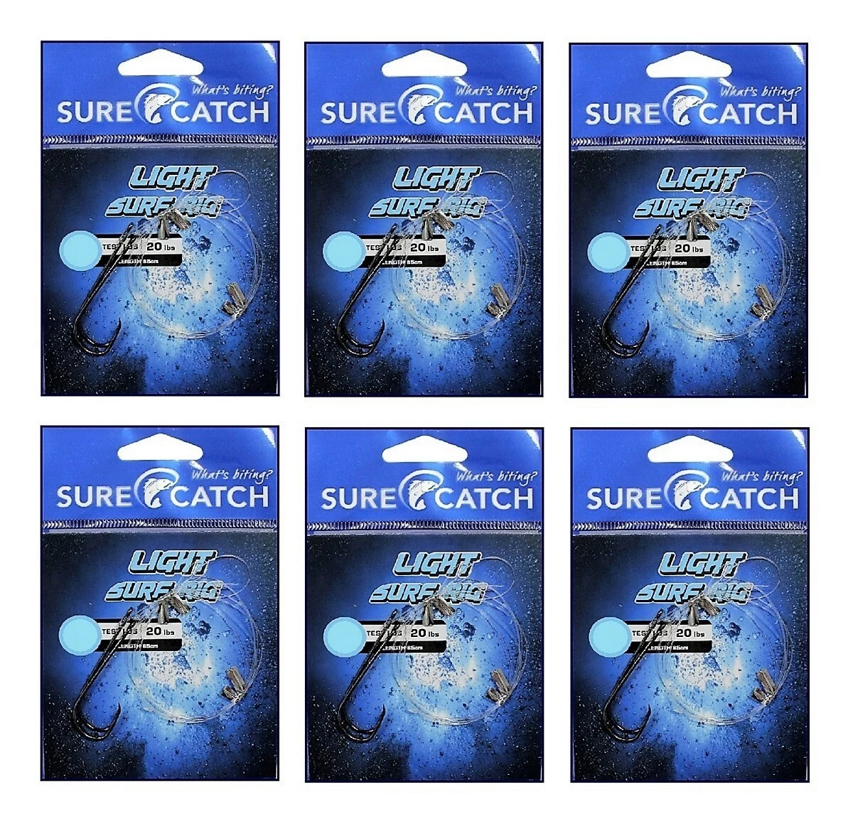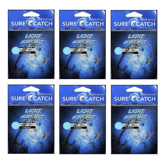 6 Pack of Surecatch Pre-Tied Light Surf Rigs with Chemically Sharpened Hooks