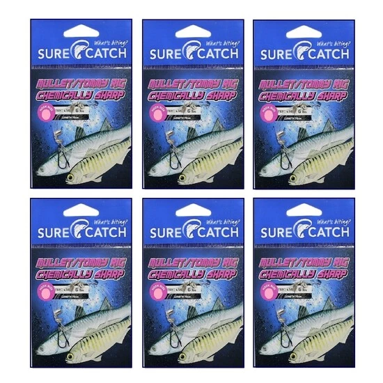 6 Pack of Surecatch Pre-Tied Mullet Rigs with Chemically Sharpened Fishing Hooks