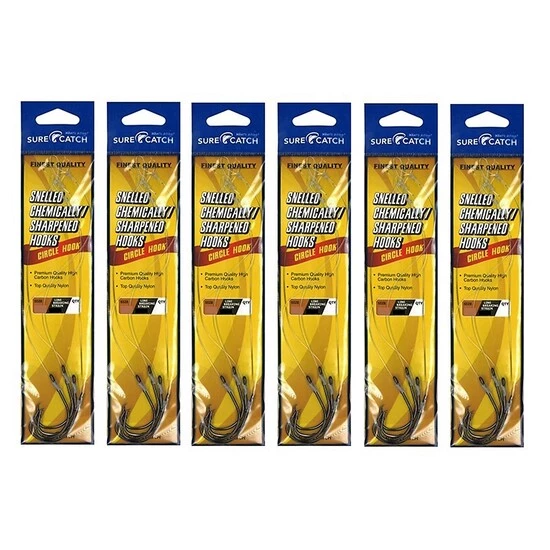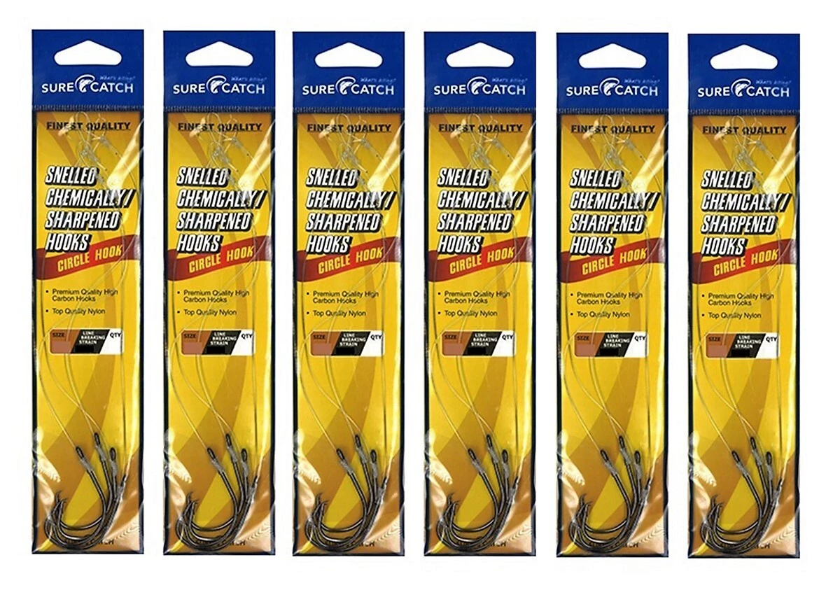 6 Packets of Surecatch Snelled Chemically Sharpened Circle Hook Rigs