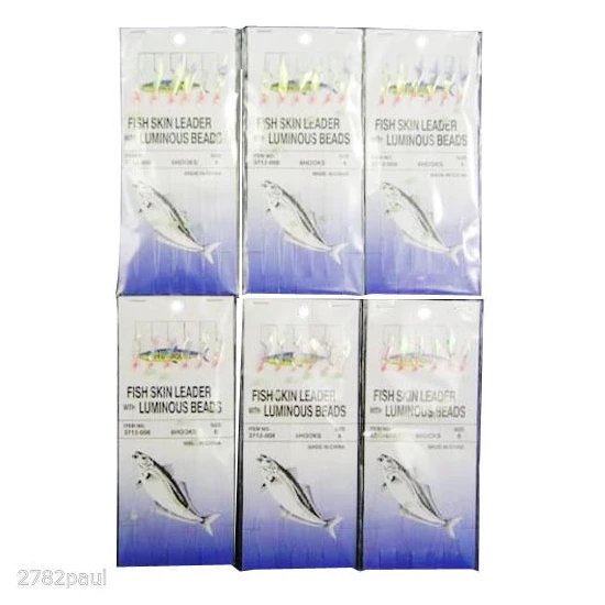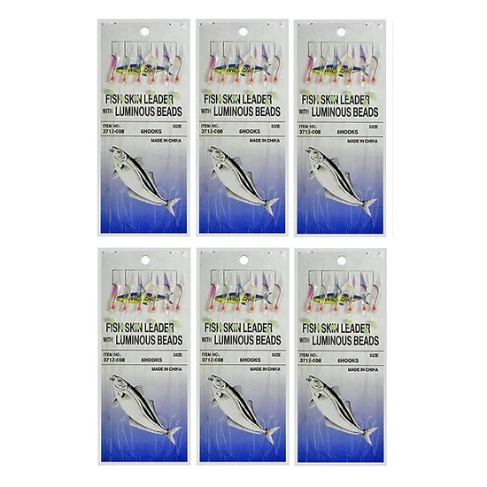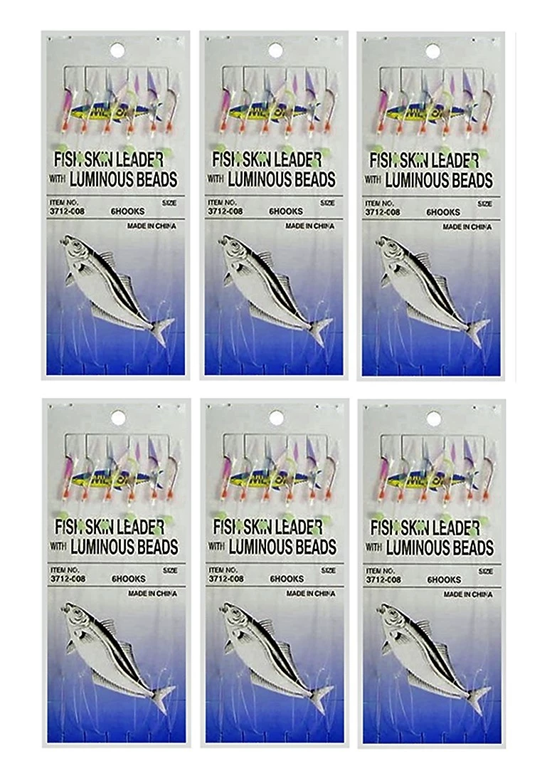 EACH JIG HAS 6 HOOKS rigged with FISH SKIN LEADER and LUMINOUS BEADS